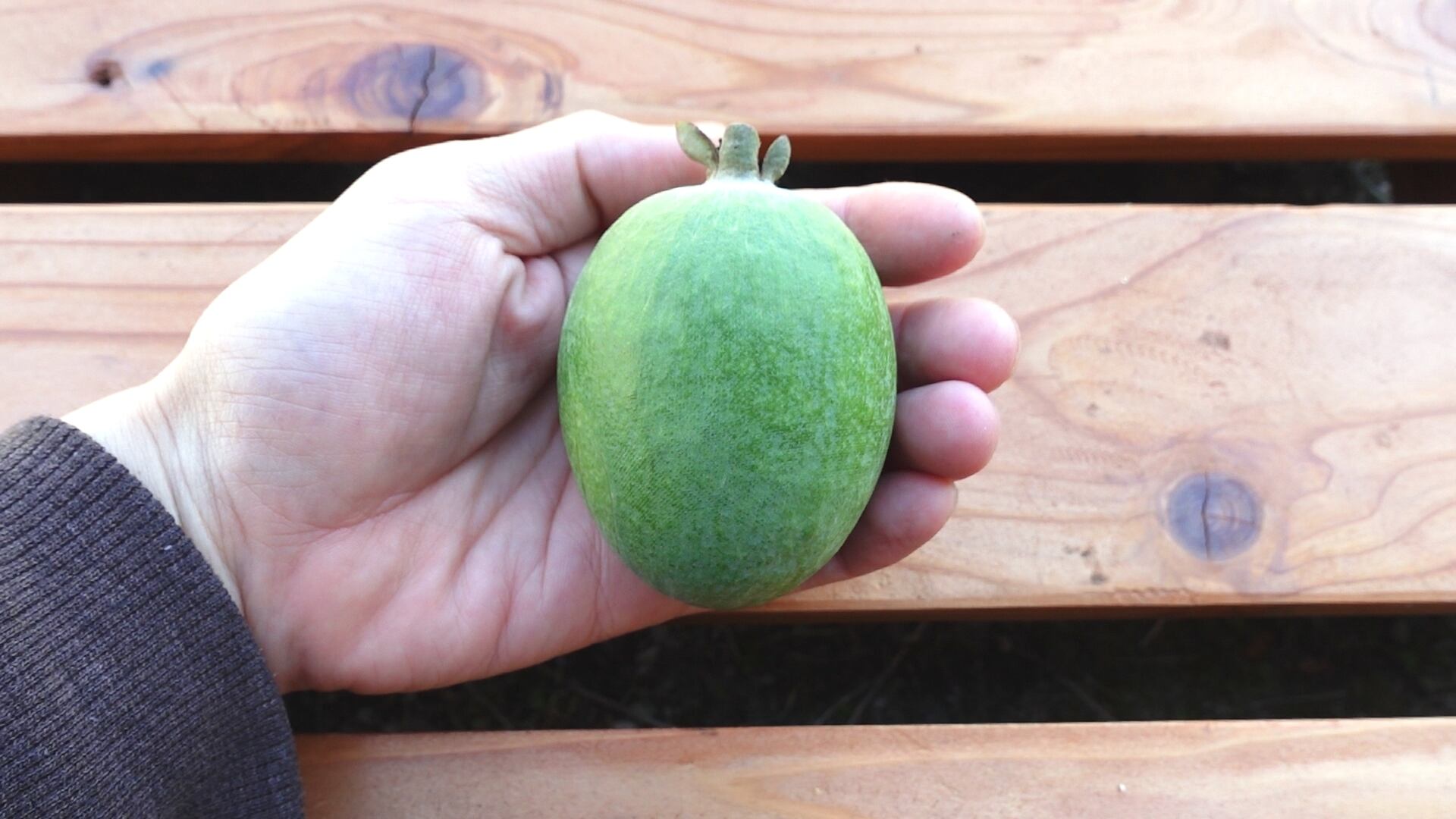 フェイジョアは甘くて香り高い果物です。苦味や酸味もあります。食感はサクサクそしてゼリーのような部分はとろりとしています。