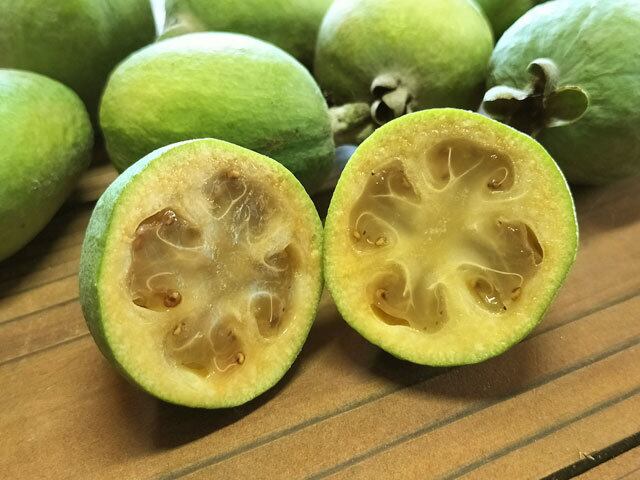 フェイジョアは甘くて香り高い果物です。苦味や酸味もあります。食感はサクサクそしてゼリーのような部分はとろりとしています。